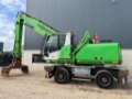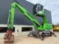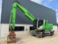 This Sennebogen 818 E material handler is equipped with a 4 cilinder water cooled turbo charged Cummins QSB4.5 (97kW) diesel engine with 9665 working hours on the service meter. NPK DG-20 demolition grab from 2018, cabin protection, full rubber tires, central lubrication, CE document, additional books, rear and side view camera, GKD height limiting system, Fireward automatic fire suppression, airco, radio etc.