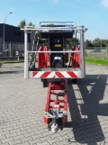 Besonderheiten: Stützlast 75 kg, drehbarer Arbeitskorb 180°, Steckdose im Arbeitskorb, Rangierfahrantrieb, Betrieb wahlweise über Dieselmotor oder 230 V Netzanschluss. Gerät wird im Elektrobetrieb über Stromkabel betrieben.