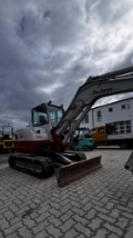 DER TB 260 – die Besonderheiten (Auszug) - Kurzer Heckschwenkradius (1,30 m) - Automatische Druckentlastung der Zusatzhydraulik - 1., 2. + 4. hydraulischer Zusatzsteuerkreislauf proportional gesteuert und mit fest programmierbarer Litermenge - TFM Komfort Einfache Bedienung und optimale Steuerung Hydraulisch vorgesteuerte Joysticks Ergonomisch angeordnete Armauflagen Aufs Gewicht einstellbare Fahrersitze Breite Ein- und Ausstiege Geringe Arbeitsgeräusche und Vibrationen Flexibilität Optional können die Takeuchi Bagger mit dem Schnellkupplungssystem TAKLOCK ausgerüstet werden, mit dem Sie die Hydraulikleitungen für Anbaugeräte wechseln können, auch wenn diese unter Druck stehen. Sicherheit Serienmäßige Rohrbruchsicherung und Lasthalteventile Überlastwarneinrichtung Transportfähigkeit Dank der kompakten Baukonstruktion (Maße: 1.870 mm breit, 5.540 mm Transportlänge und 2.560 mm hoch) sowie den serienmäßigen Verzurrösen kann der TB 260 ideal verladen und transportiert werden.