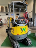 Wacker neuson EZ17e ZeroTail minigrävmaskin utan bakre överhäng. Tack vare det starka litiumjonsbatteriet kan den användas under en hel arbetsdag och därefter, vid behov, fortsätta genom anslutning till nätdrift. Genom dess egna patenterade batteriteknologi med integrerad batterivärmning kan maskinen laddas från alla energikällor (100 – 415 V). Enkelt att plocka av takbågen för att komma in i hus etc.