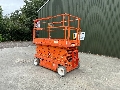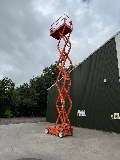 Schaarhoogwerker met een werkhoogte van 11,7m Accu machine met een ingebouwde lader en een accu pakket vervangen in 2024 Laag eigen gewicht van slechts 2300kg. Nonmarking banden set. Platform uitschuifbaar.