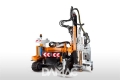 Turchi 300F self-propelled hydraulic pile driver for photovoltaic installations, guardrails and structures on poles. Compact 4.5 t machine with rubber tracks, Indeco hammer up to 1,200 joules and tilting column for work in complex terrain.