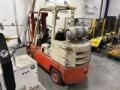 2 Stage Mast, Full Free Lift, 106 in Max Lift Height, 76 in Lowered Mast Height, 42 in Forks, Nissan 3000 6 Cylinder Dual Fuel Engine. to see more information.