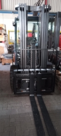 Endkundenbemerkung: vorgebauter Seitenschieber, ohne Lastschutzgitter, Schnellkupplung auf 3. und 4. Hydraulikfunktion, 4 Ventile mit Schlauchführung für 3. und 4. Ventil, SE Reifen, LED-Arbeitsscheinwerfer vorn, Rückkombileuchte, akustisches Rückfahrsignal, OK-Monitor (Warnleuchte für Luftfilter, Kühlflüssigkeitsstand, Parkbremse), Multifunktionsdisplay Deluxe (Anzeige des Lastgewichts, Beleuchtung bei ausgeschalteter Zündung aus, inkl. Motorabschaltung), mechanische Hebel mit Fahrtrichtungsschalter an der Lenksäule, , Getriebeumschaltschutz, 3-Wege Katalysator, Schutzabdeckung Neigezylinder, Frontscheibe, Wischer, Dach einschl. Fahrerschutzdach, Panorama-Innenspiegel, CE-Zertifikat, Sonderausstattung: LED Rückkombileuchte, akustisches Rückfahrsignal, OK-Monitor, Multifunktionsdisplay Deluxe, Getriebeumschaltschutz, Schutzabdeckung Neigezylinder, SpecialEquipment: 3. Ventil, 4. Ventil, Arbeitsscheinwerfer vorn, Dachabdeckung, Frontscheibe, CE Zertifikat, Innenspiegel, Scheibenwischer, OtherAttachments: Sideshift