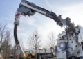 Pipe on a hydraulic boom