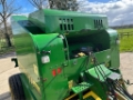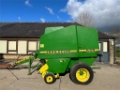 John Deere 575 round baler in good condition. Year 1998, net wrap, chopper, flotation tyres, 85,519 bales