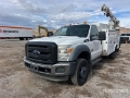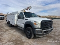 Located in Lane 4 Spot 9, Ford Power Stroke V8 6.7 L Diesel Engine, 2012 US EPA Label, 985 Engine hrs, Automatic Transmission, 7000 lb Front Axle, 14706 lb Rears, 19500 lb GVWR, 225/70R19.5, Spring Suspension, 165 in Wheelbase, PTO, Brandfx 11 ft Body, Manual Stabilizers, IMT 2015 5000 lb 3 Section Hydraulic Crane, Wired Remote Control, Hydraulic Air Compressor, Air Hose Reel